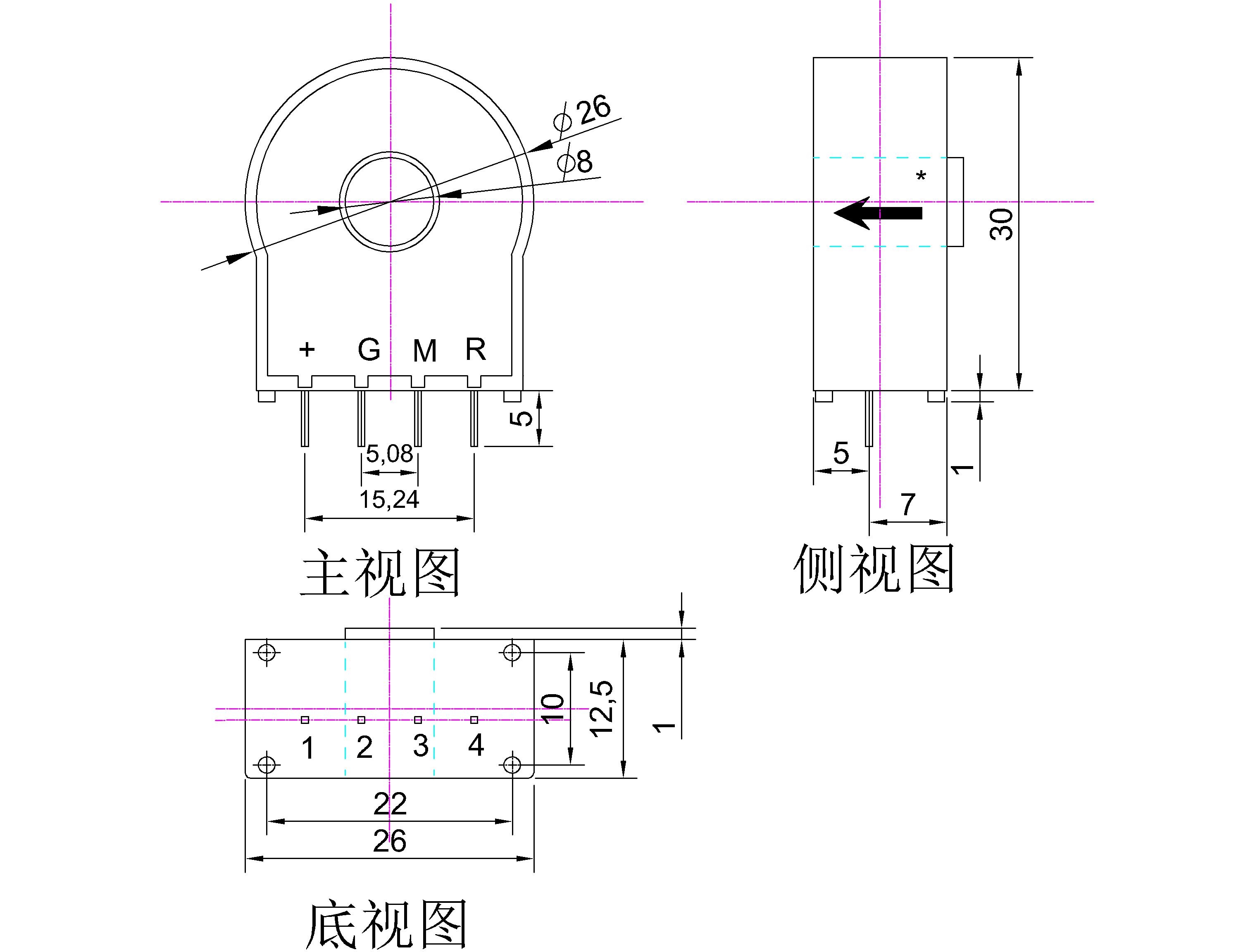 该传感器采用磁平衡霍尔电压检测原理工作。原边电流产生的磁通量与霍尔电压经过放大产生的副边电压,通过副边线圈所产生的磁通量相平衡,副边电压便能精确地反应原边电流。